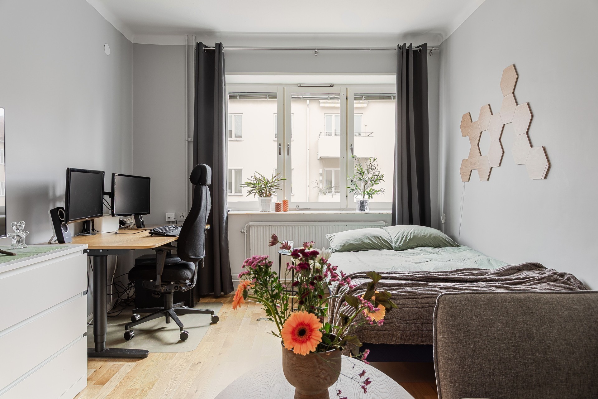 Perfekt planerad i Lågt belånad BRF som äger marken. En lägenhet med mycket hemkänsla, helkaklat och renoverat badrum, bra arbetskök och ett rymligt vardagsrum med klädkammare, som är lättmöblerat. Möjlighet finns att ta upp vägg mot kök. Målad väggar i sobra toner, Genomgående nya parkettgolv och ca 2,7 m i takhöjd som skapar rymd., Vä/Va, digital-TV via Tele2/Tele2 small och bredband (1000/1000Mbit/s) via Bahnhof, samt gemensamt El-abonnemang ingår i avgiften. Föreningen samköper elen vilket innebär att den schablonberäknas och är inkluderad i avgiften. Detta innebär en besparing för medlemmarna, då de inte behöver betala för ett eget nät-abonnemang. På Eriksdalshyllan handlar mycket om närhet till grönska och Årstavikens vatten. Grönområden andra besöker på helgerna ligger kant i kant med föreningen. Du går ner till vattnet, genom grönska och charmiga kolonilotter, på 2-3 min. Promenadstråk, småbåtsmarinor, bryggrestaurang mm. Eriksdalsbadet med bassänger både ute och inne, utegym, badmintonstadion, omåttligt populära Trädgården under Skanstullsbron. Allt endast minuter från porten. Du går till bussen på 2 min och till T-bana Skanstull på 6 min. Här finns också Ringen köpcentra och Götgatan med all tänkbar service. Nära till allt. Man förstår varför området är omtyckt. Föreningen byggde sina hus på 30-talet, aktuellt hus 1932. Populär, stor och trygg samt ekonomiskt stark äkta Brf som äger marken. Välkomna!